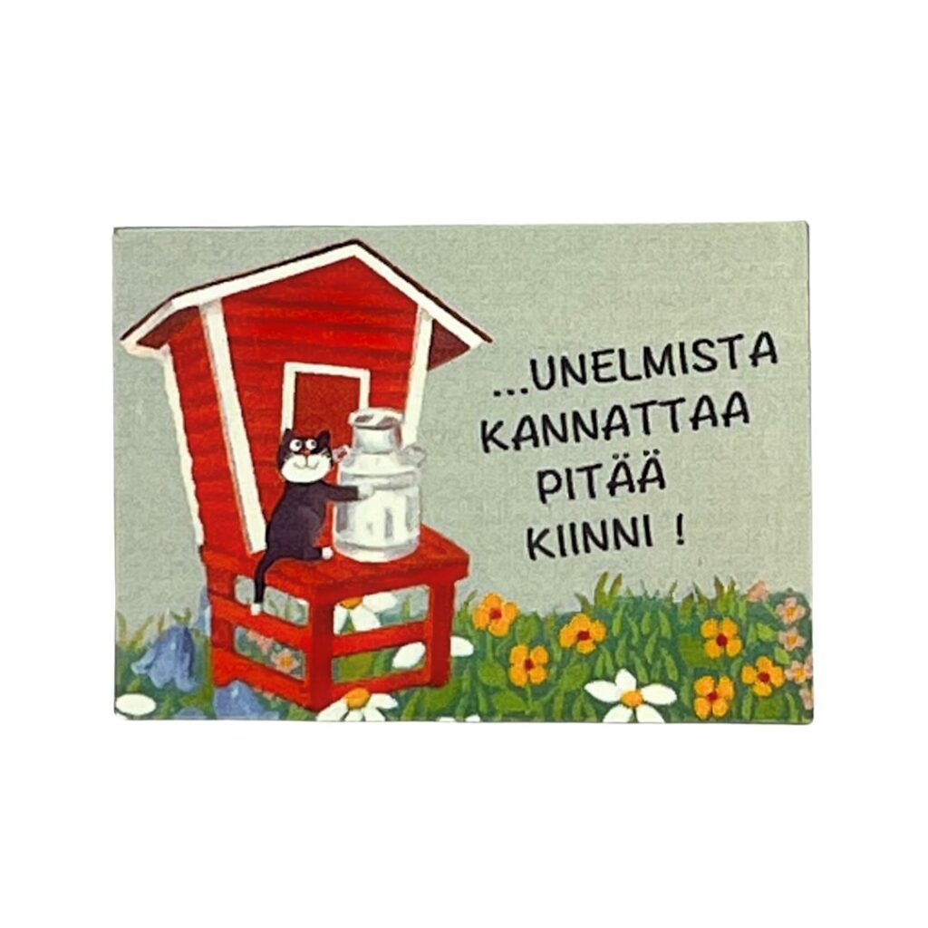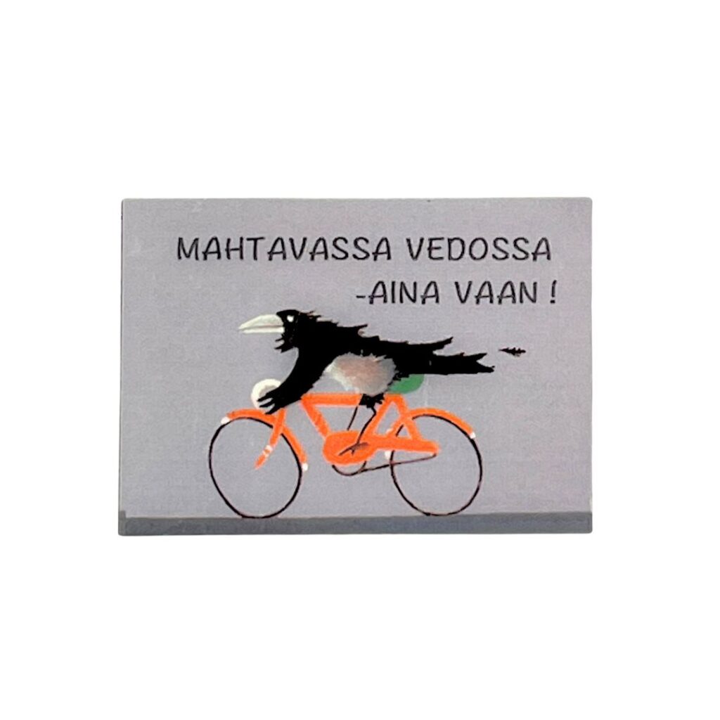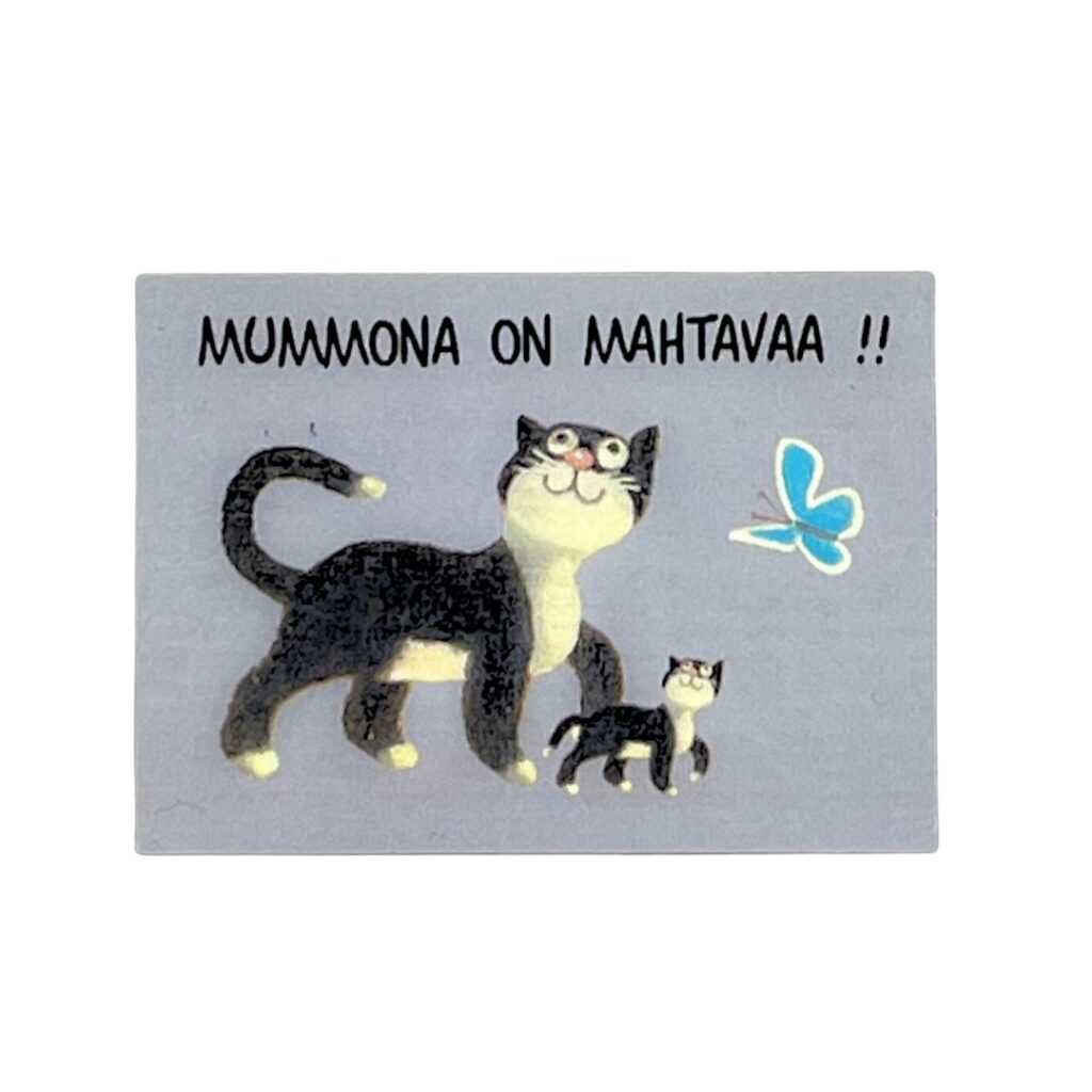 Kotimainen magneetti Vilippus-kuvituksella on piristävä koristus jääkaapin oveen! Jääkaappimagneetteja on saatavilla kahtaa eri kokoa. Magneetteja koristavat veikeät kuvitukset on luonut taiteilija Pertti Ylinen.