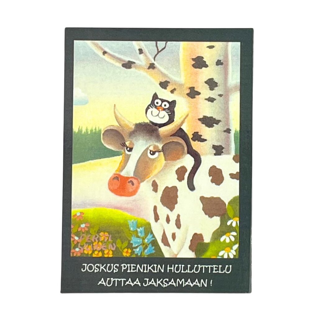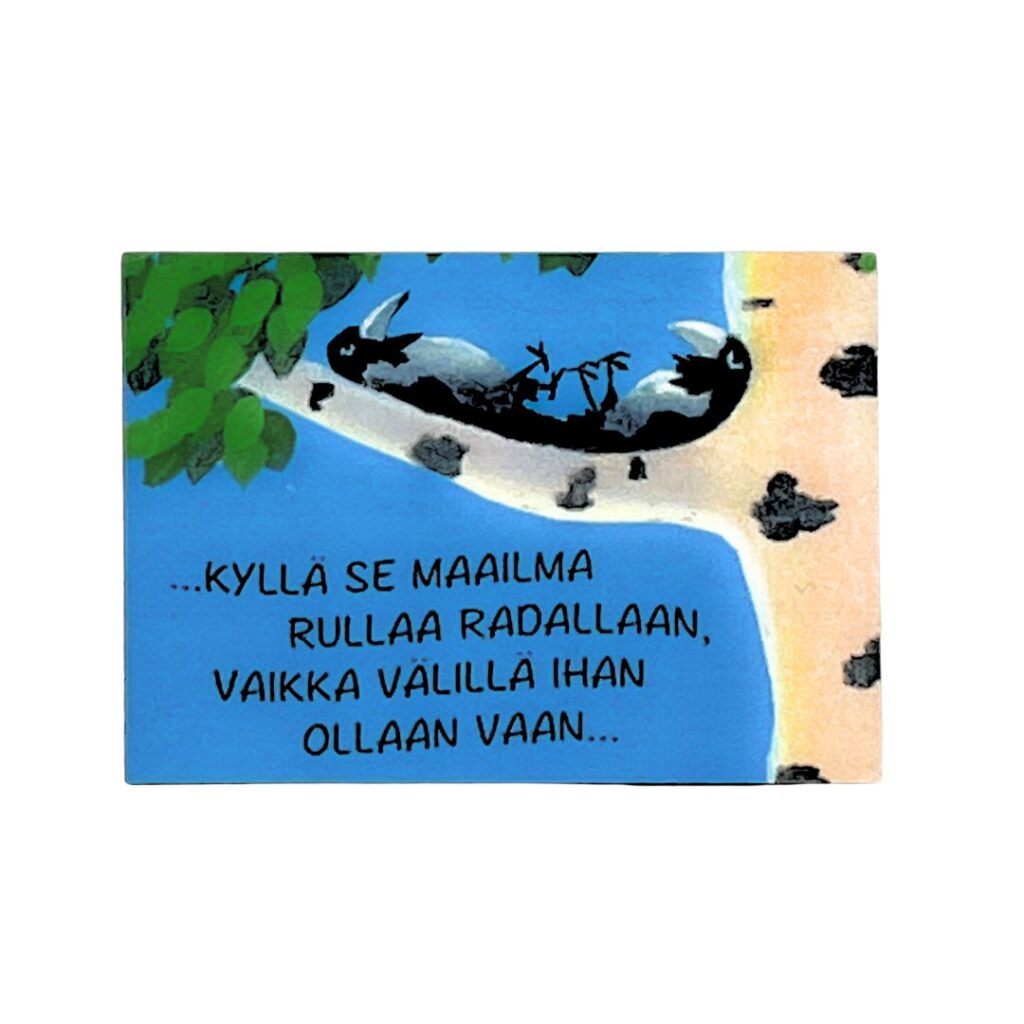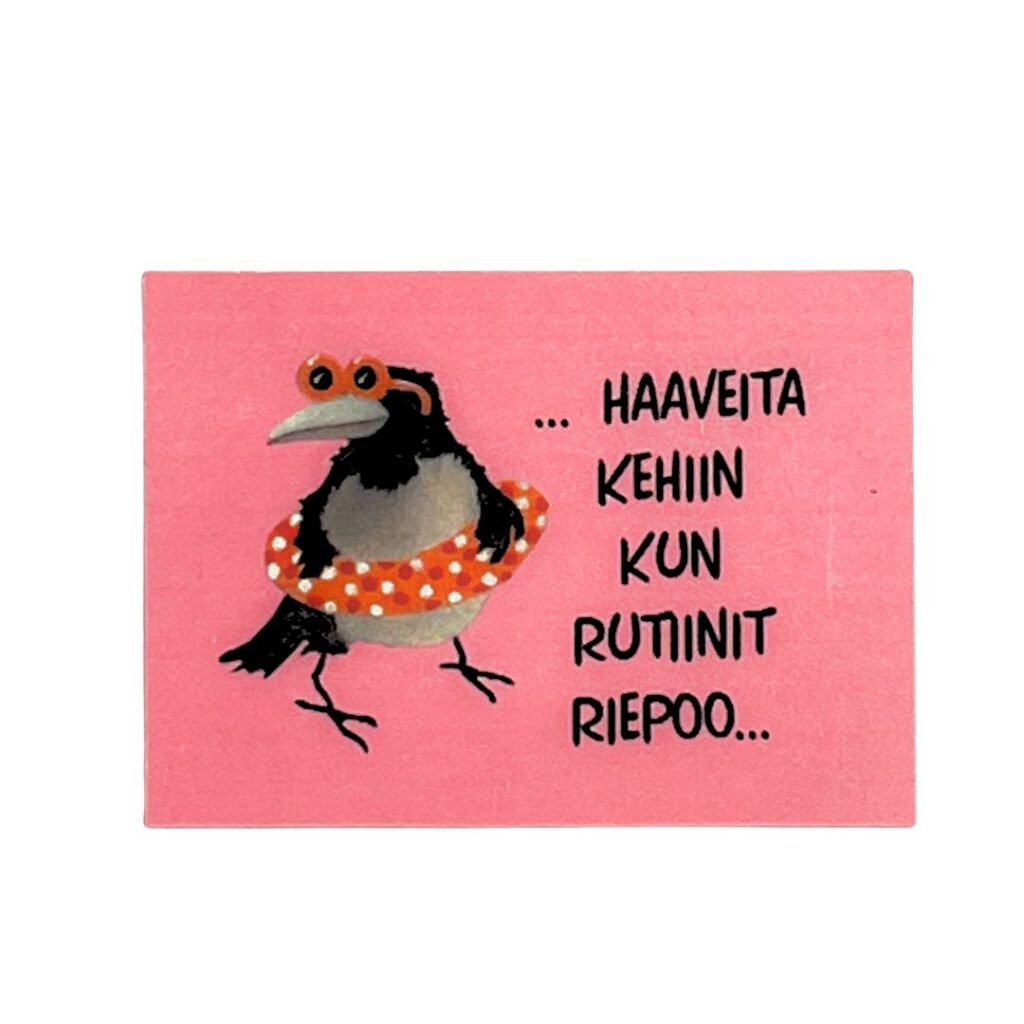Kotimainen magneetti Vilippus-kuvituksella on piristävä koristus jääkaapin oveen! Jääkaappimagneetteja on saatavilla kahtaa eri kokoa. Magneetteja koristavat veikeät kuvitukset on luonut taiteilija Pertti Ylinen.