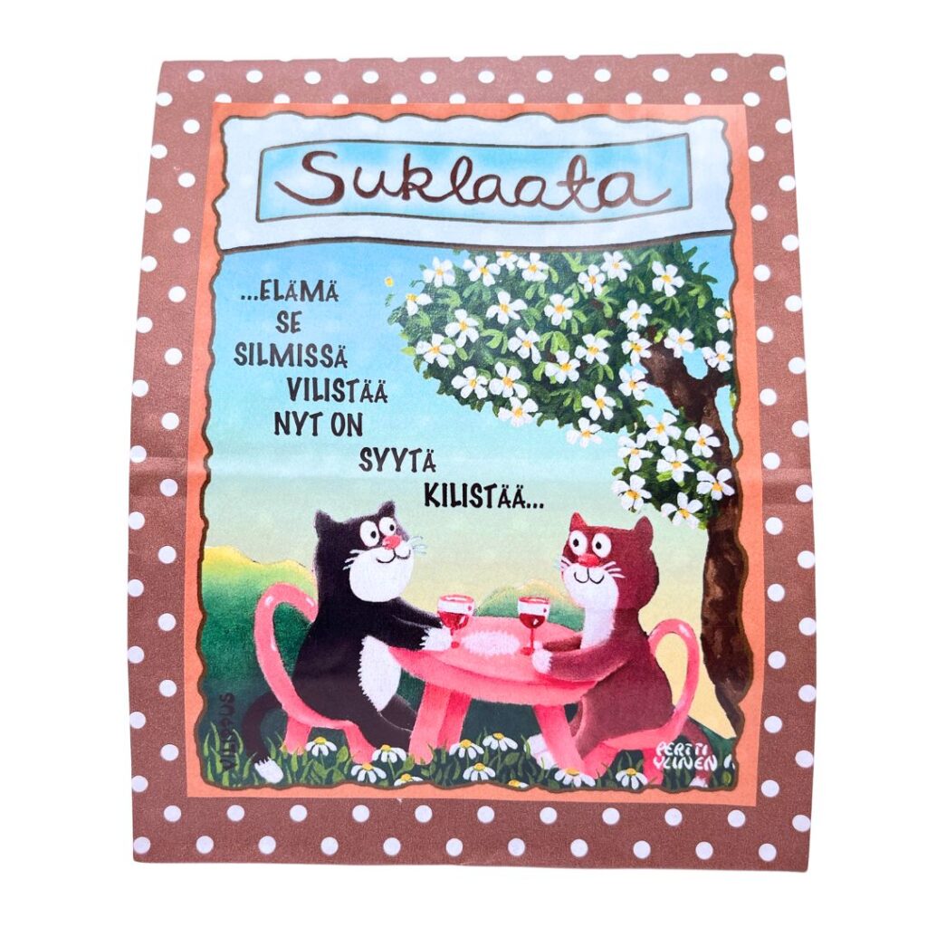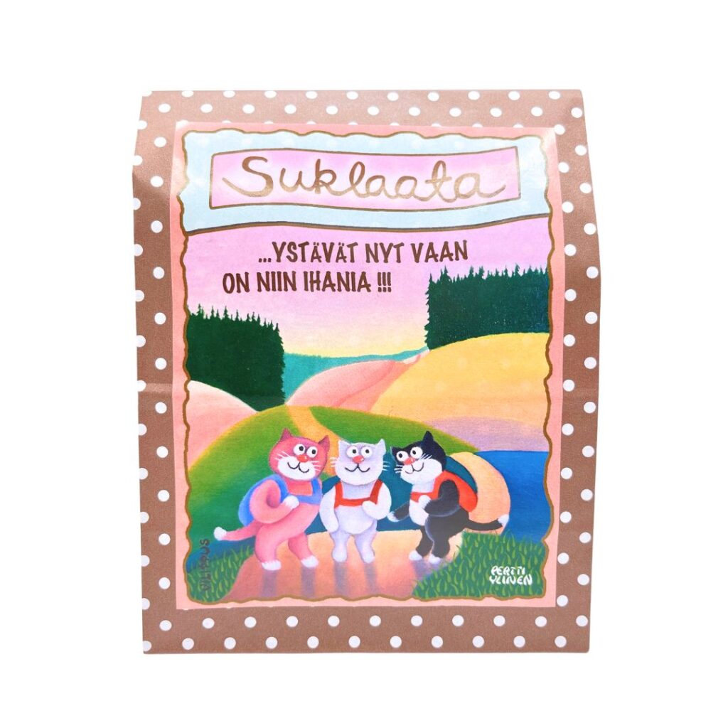 Lindt maitosuklaa pussitettuna veikeisiin pusseihin Vilippus-kuvituksella on hauska lahjaidea! Ylelliset maitosuklaatryffelit ovat suussasulavia herkkuja. Pussien veikeän kuvituksen on luonut taiteilija Pertti Ylinen. Kuvituksia ja tekstejä pusseista löytyy moneen tarpeeseen, kuten arkeen, syntymäpäivälahjaksi ja ystävälle.